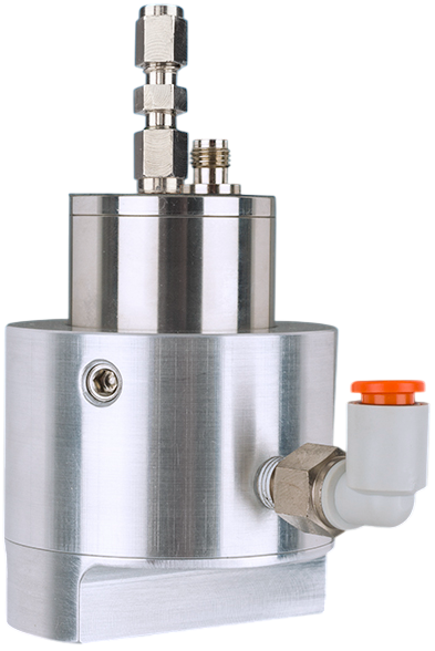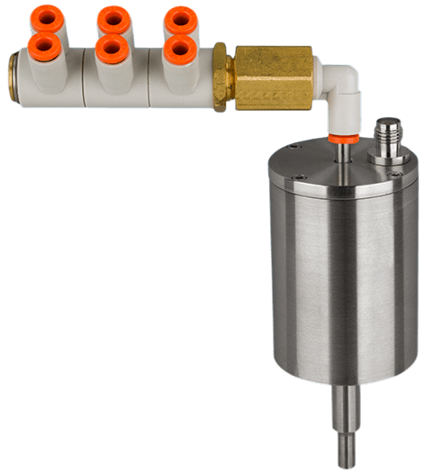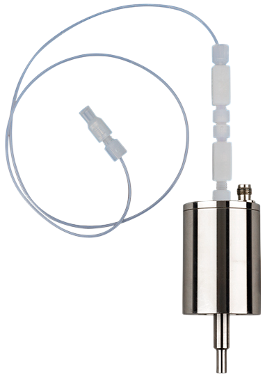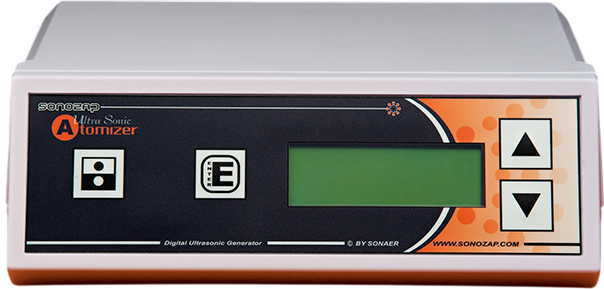 Sonaer’s high temperature 40kHz atomizer nozzle with spray shapers. Nozzles are titanium alloy and 316 stainless steel construction for spraying temperatures up to 600C degrees. Nozzles come with either a pin point spray shaping attachment or our wide vortex spray shaping attachment. The pin point spray shaper can spray down to 250 micron diameters and our wide vortex spray shaper can spray droplets as wide as 100 degree angles. See our specification sheet for the spray shapers at the link provided Spray Shapers The atomizer nozzles come standard with cooling ports, gas feed line and compression fitting.
